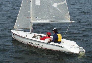 It's a perfectly stable boat that allows you to comfortably and safely learn to sail accompanied by one of our qualified staff members. They'll take you out on beautiful Shediac Bay and teach you all you need to know. The controls are easily accessed from the front seat.